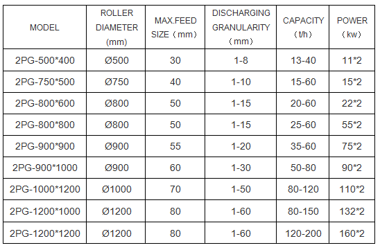 对辊破碎机工作可靠、维修简单、运行成本低, 排料粒度大小可调, 结构紧凑、体积小、操作维修方便, 液压调节排料粒度大小, 有效降低维护成本、工人劳动强度,安全高效提高生产效率。